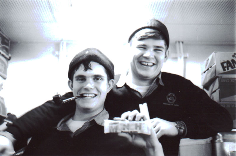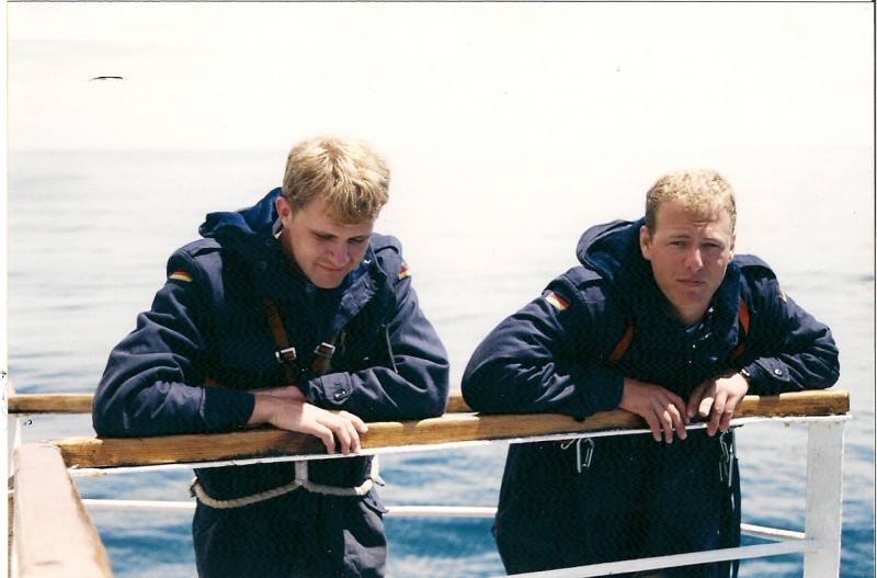 - Matt Gillam and Ron Perry aboard MIR Tall Ships 2000. Two “Yankee Midshipman” in German uniforms standing watch aboard a Russian ship. Only at MMA can these type of things happen. – Ronald Perry ’01