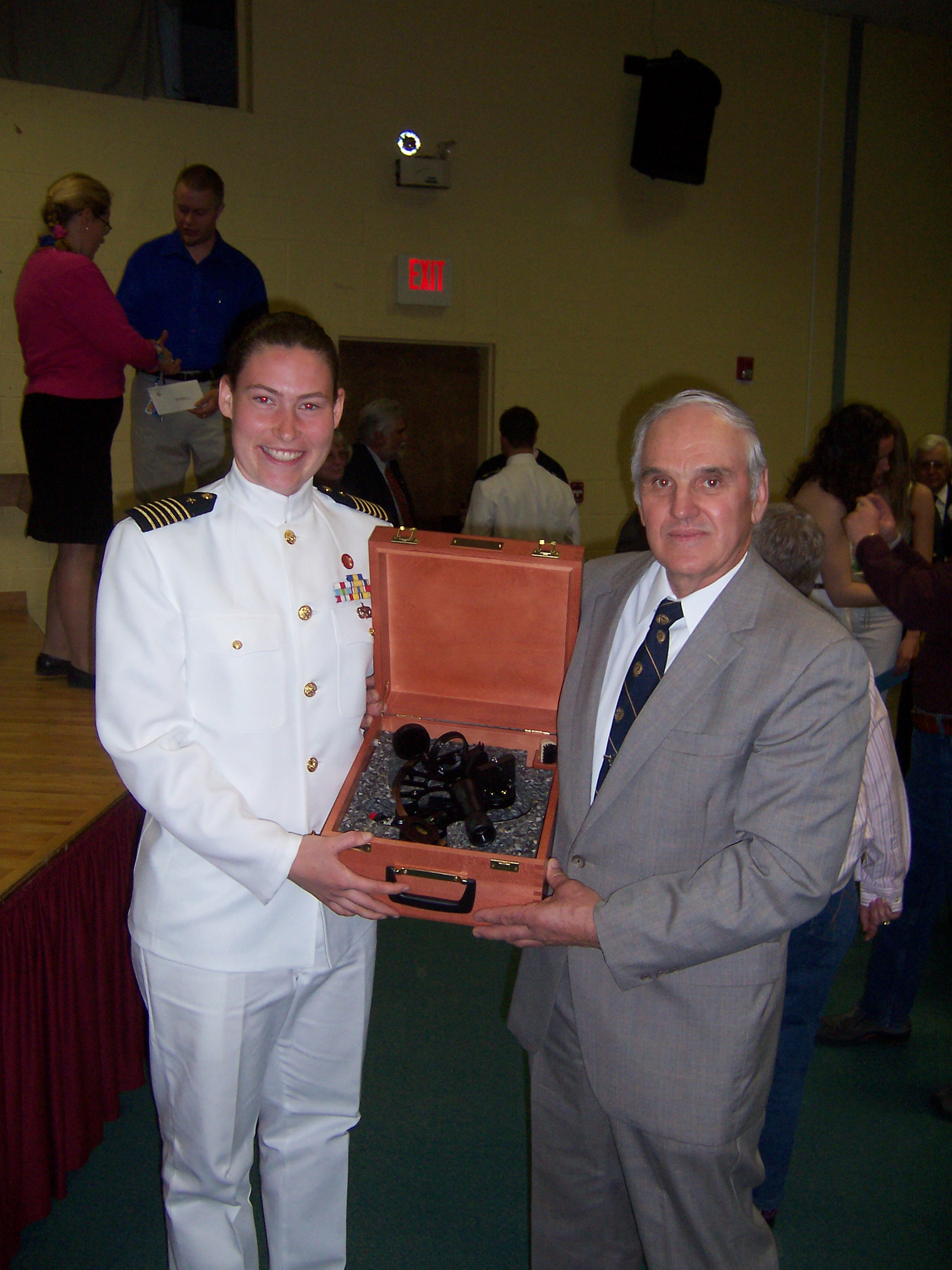 - Crystal Parker, valedictorian, receiving a sextant from the Boston Marine Society, Graduation 2006 – Donald Parker