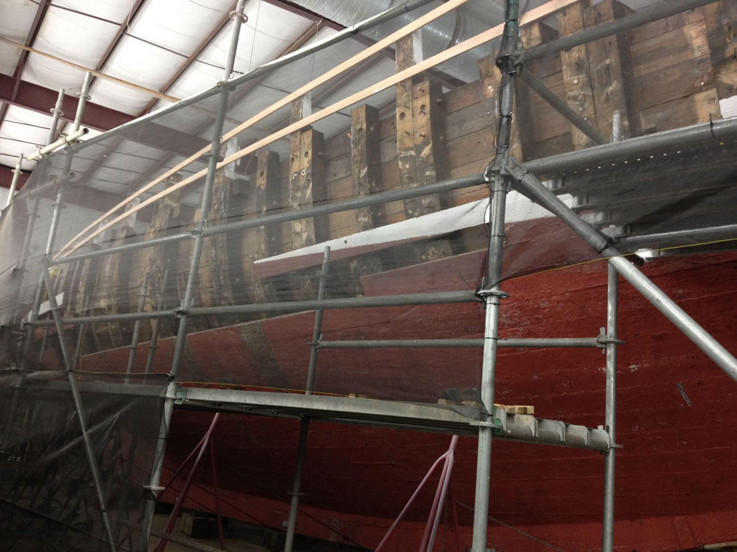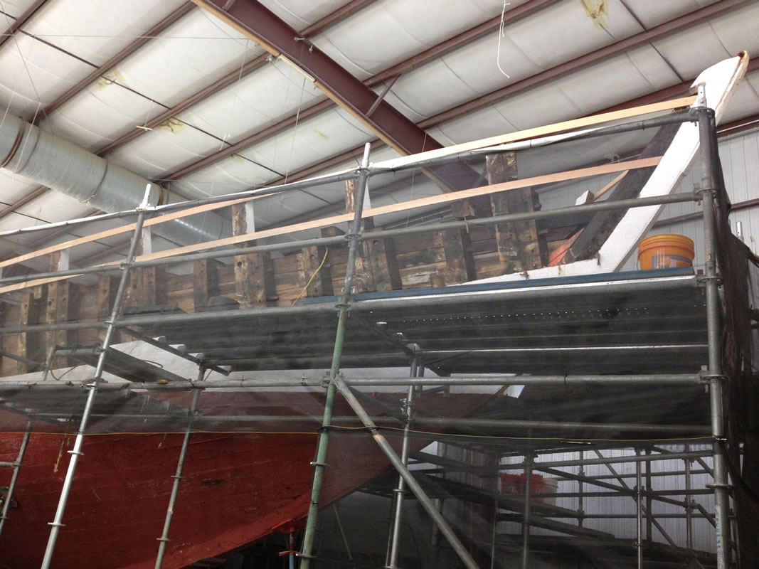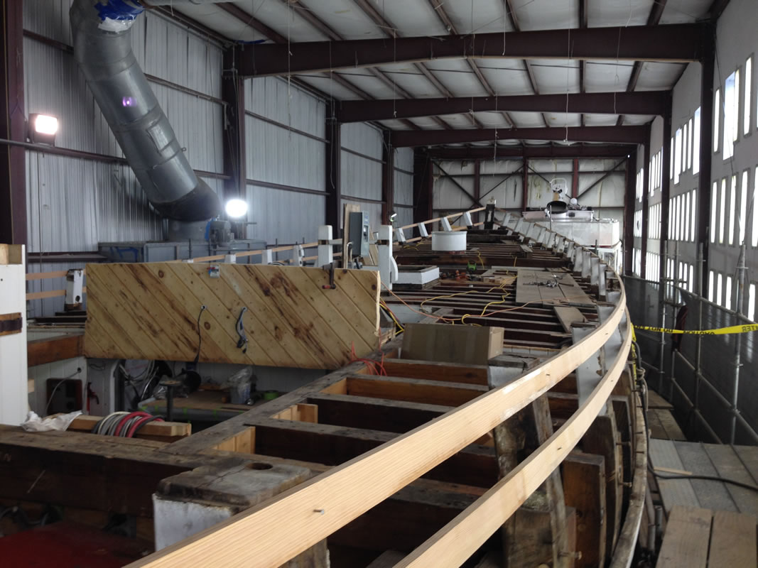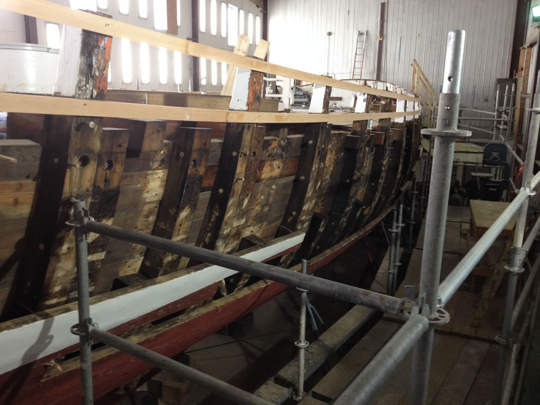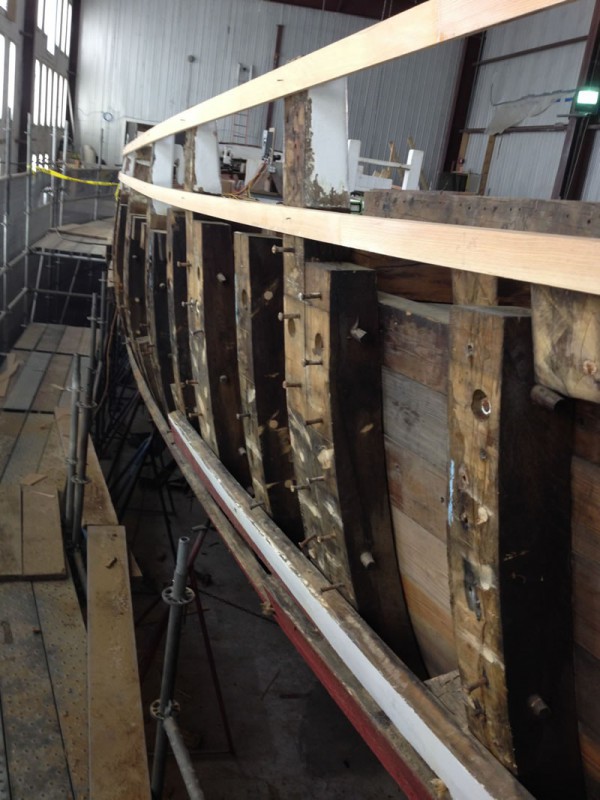 - The battens running along the top timbers will help us preserve the boat’s shape as we begin to replace all of the top timbers.