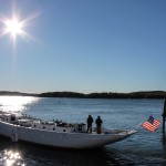The transit to Lyman-Morse at Wayfarer Marine in Camden was uneventful (in a good way). The ship was lifted with a Travelift, pressure-washed, and placed on blocks and boat stands inside, under cover. (Photo: Chase Hughes)