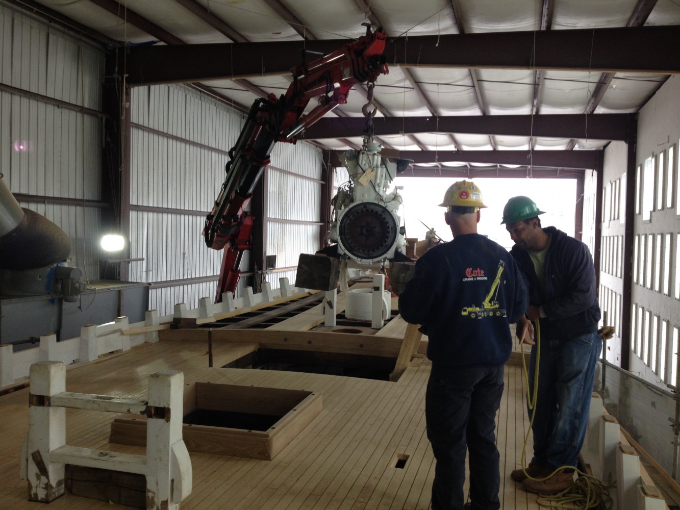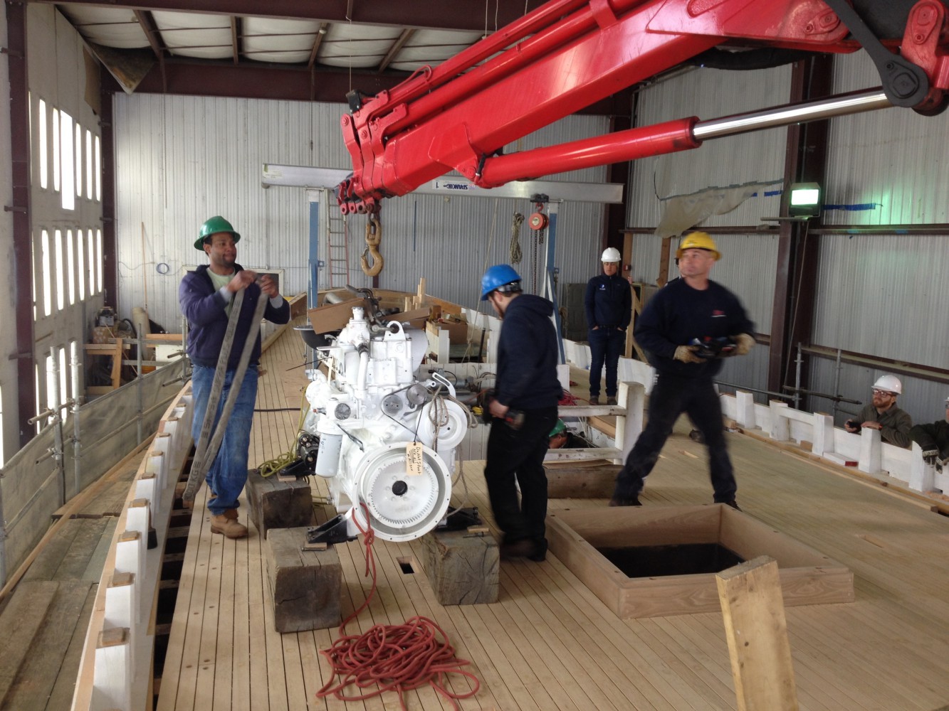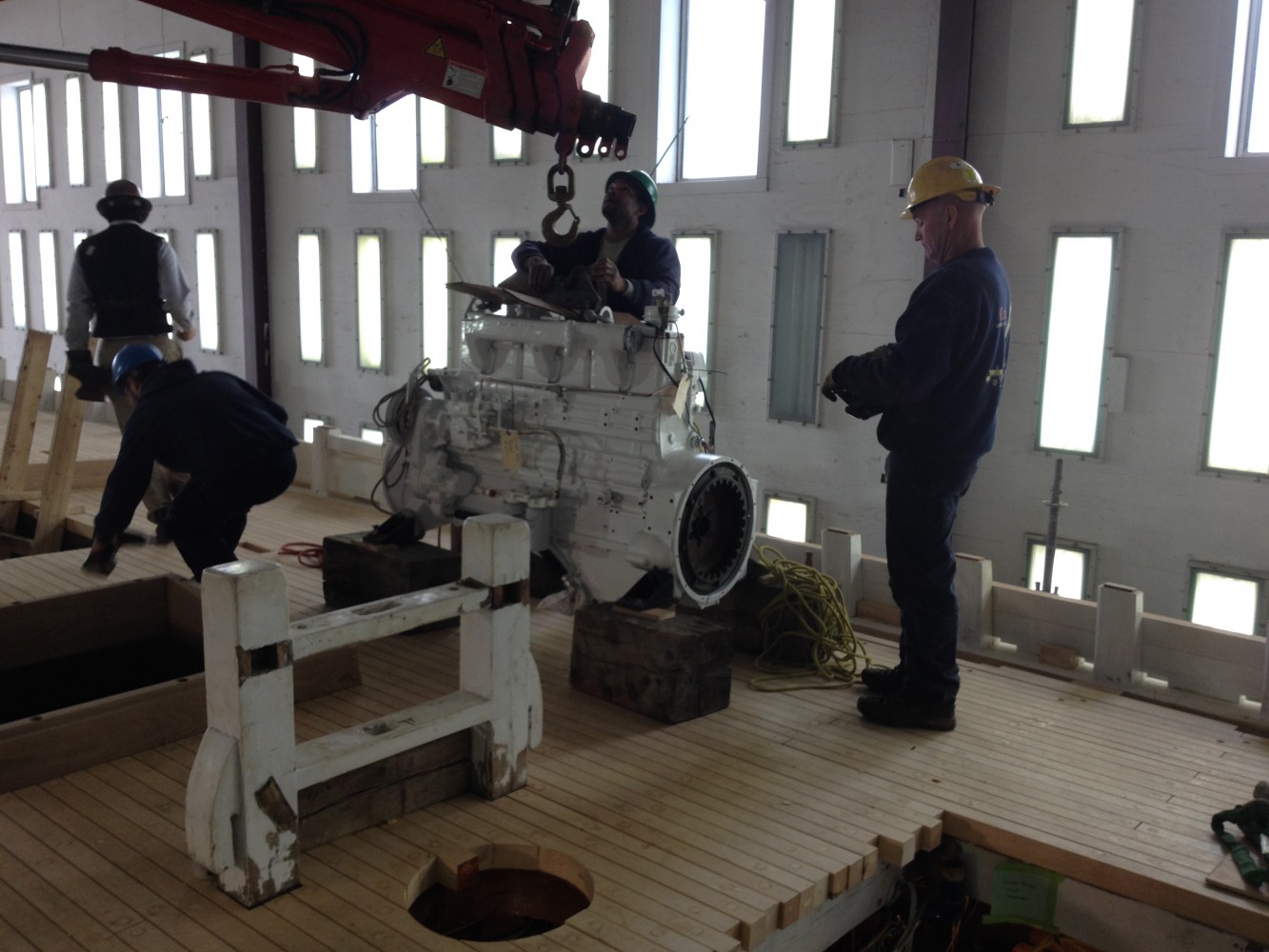 - The engine makes it way onboard.