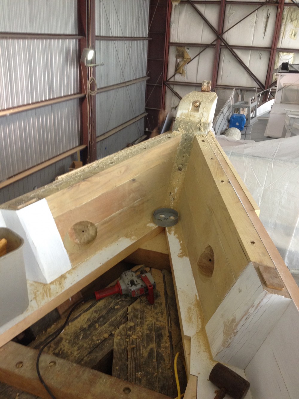 - We are starting to cut the hawse holes.