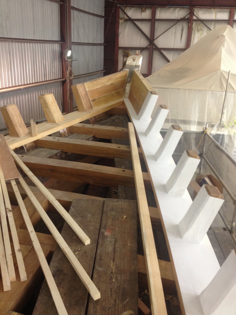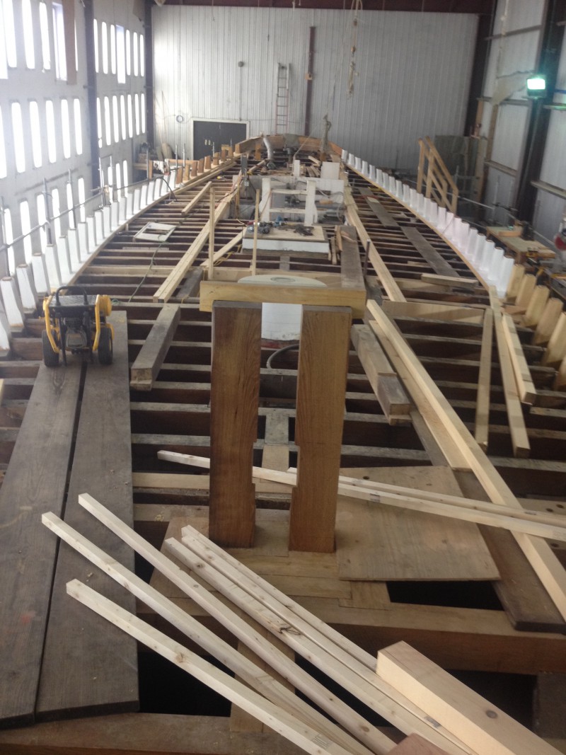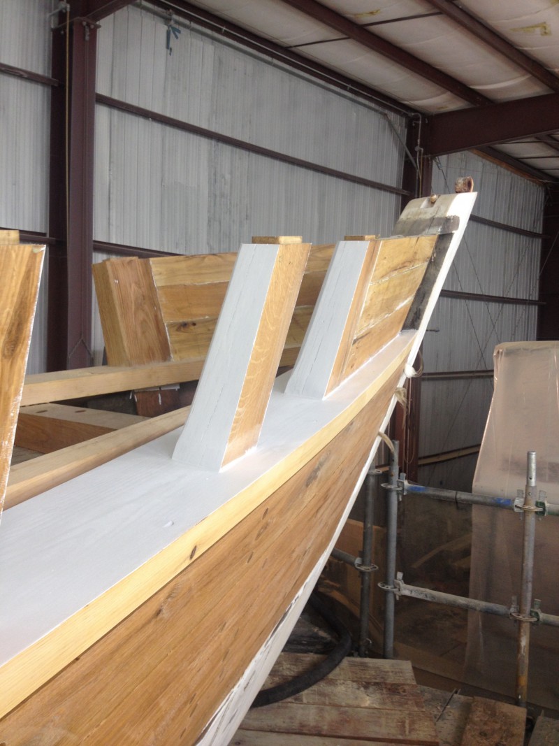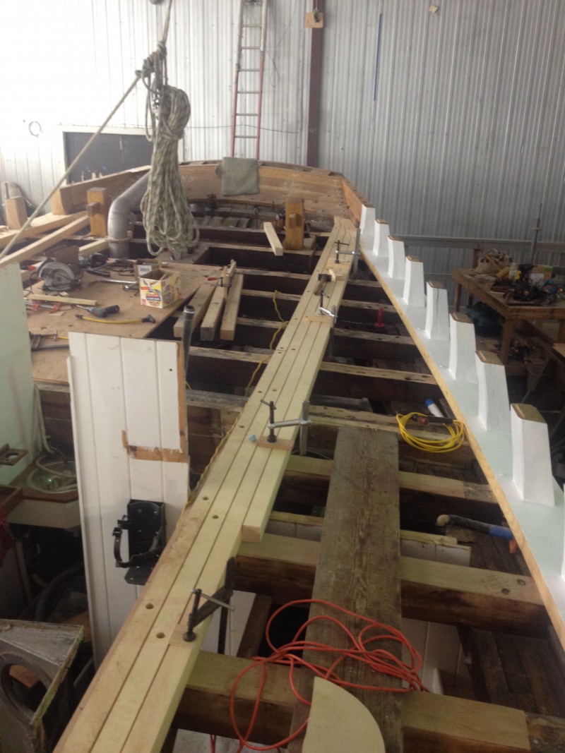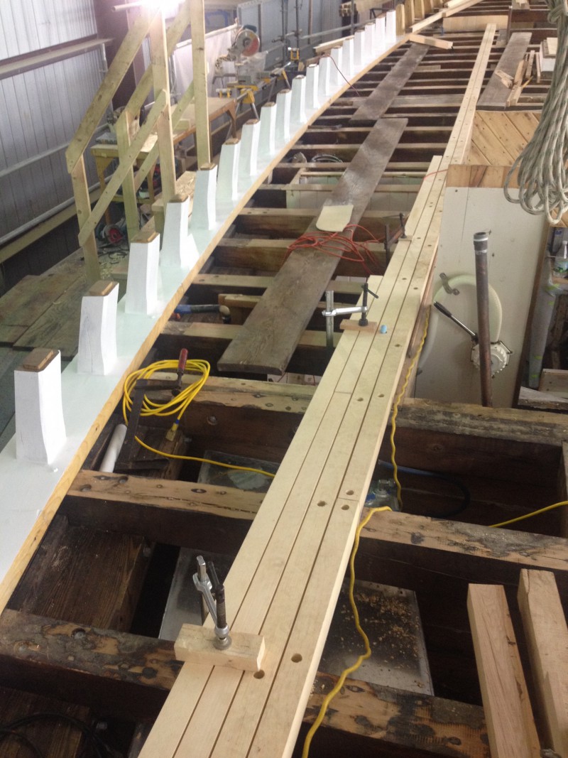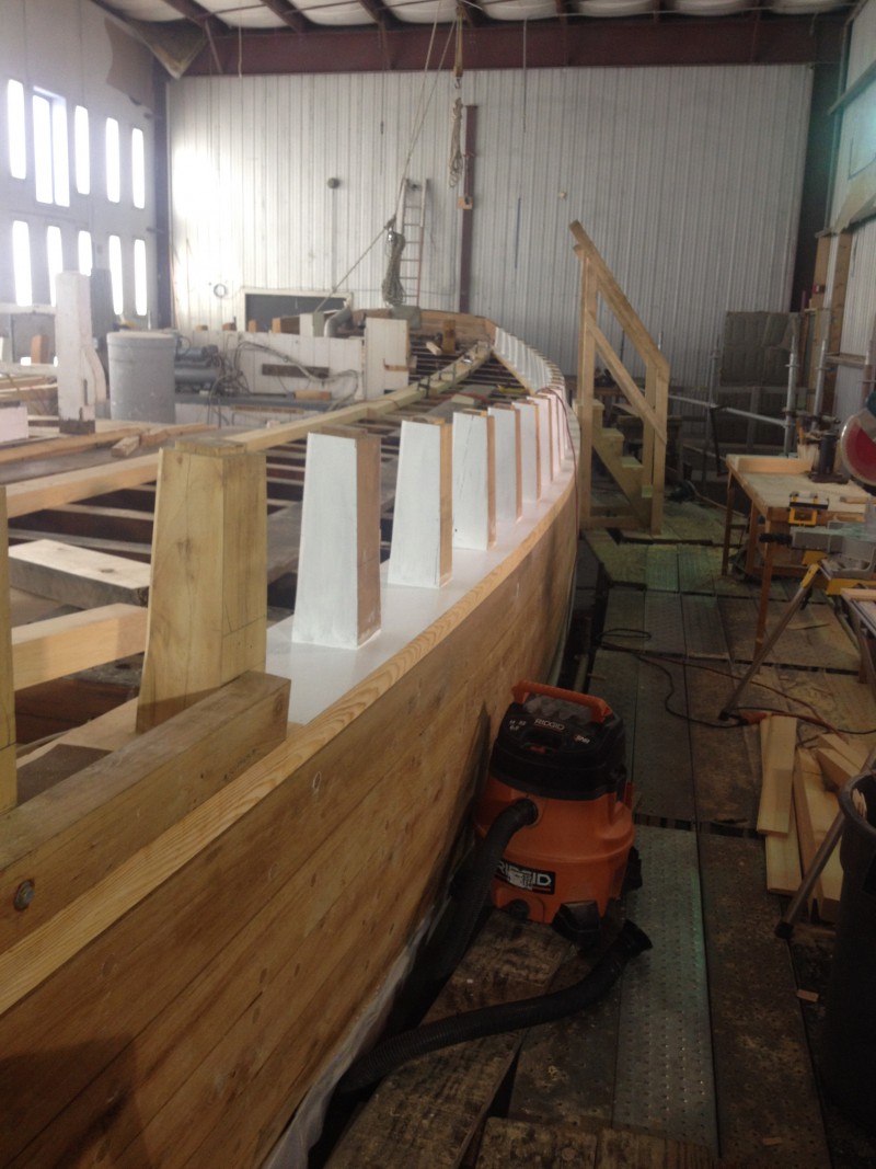So much has happened in the last month! The stanchions are all faired, chamfered, and are ready to receive the caprail. Additionally, the exhaust is well on its way to being installed, as are the fuel tanks. Perhaps the most exciting update is that we’ve started laying the deck. All just in time for the spring weather!