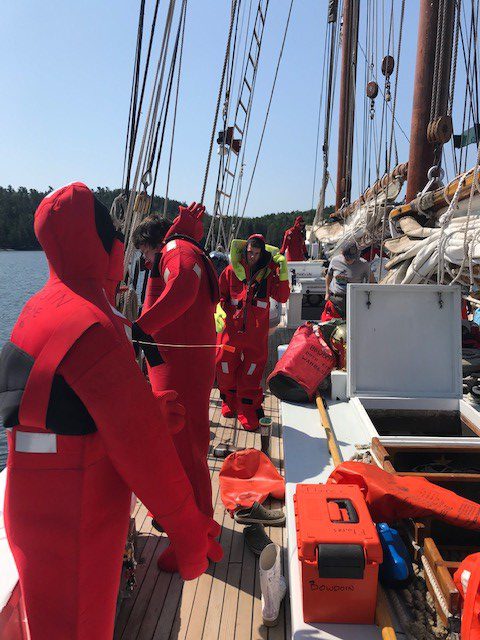 Bowdoin is officially underway, sailing south with 11 students as part of CR 313 Training Cruise A. This cruise is designed as a training opportunity for rising seniors in Maine Maritime Academy’s VOT programs. The students will take on many responsibilities throughout the voyage, including that of watch officer as we make our way towards Nova Scotia. They will also be working on their passage planning, weather routing, seamanship, and celestial navigation skills.