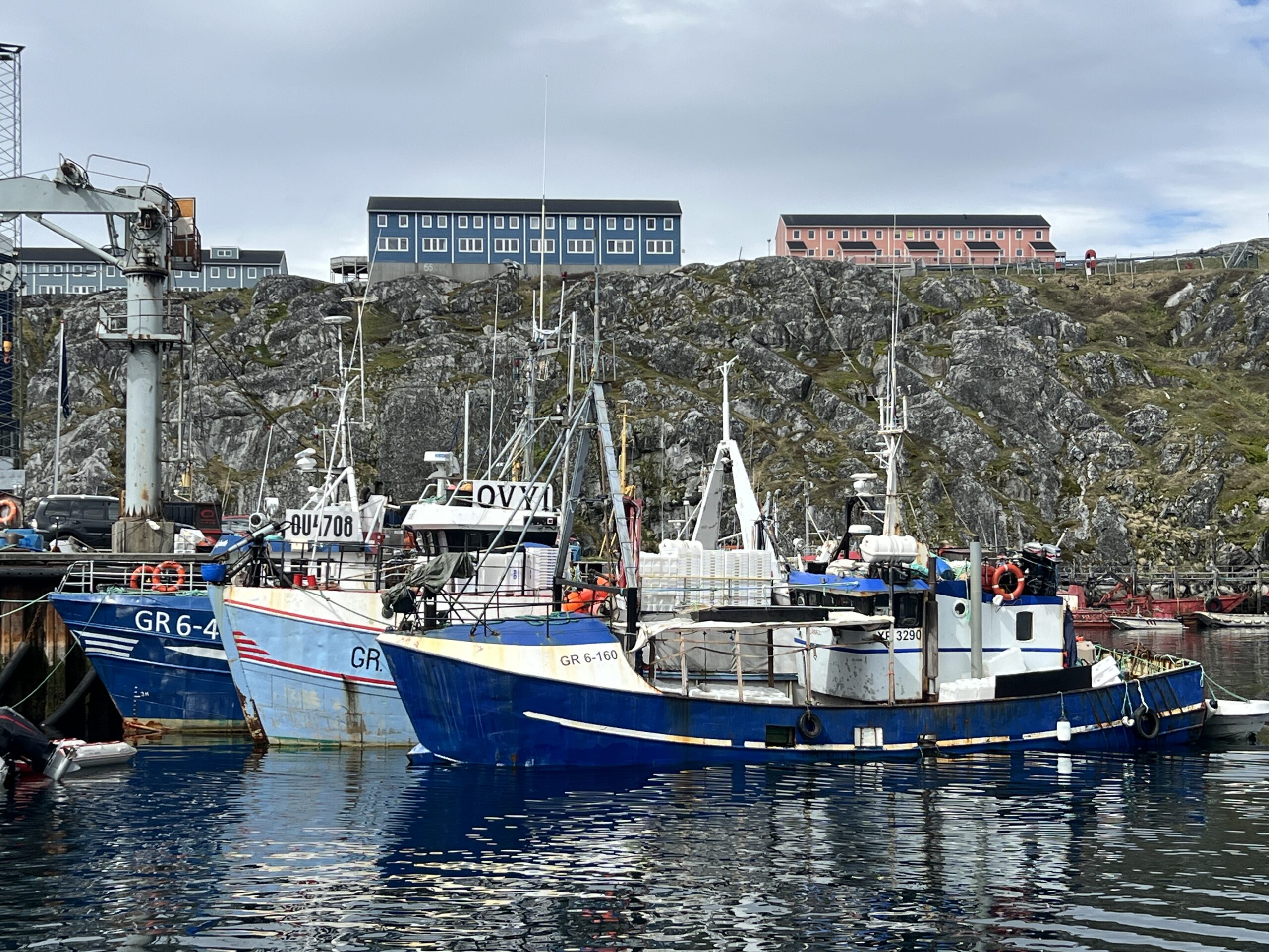 It’s currently 37°F in Nuuk, the capital of Greenland, and it’s a beautiful summer day! Nuuk is just a few miles farther north than its neighbor, the Icelandic capital, Reykjavik. Both cities share the distinction of being the northernmost latitude capital cities in the world. Sailing along the impressive Greenlandic coastline, the icebergs dotting the sea and the snow-capped mountains gave way to a view of the kaleidoscope of buildings in the distance as the Bowdoin turned into the Nuup Kangerlua fjord and sailed into Nuuk Port and Harbor. The fishing and seafood industries are important contributors to Nuuk’s economy, and most of Greenland’s fishing fleet is based in Nuuk.