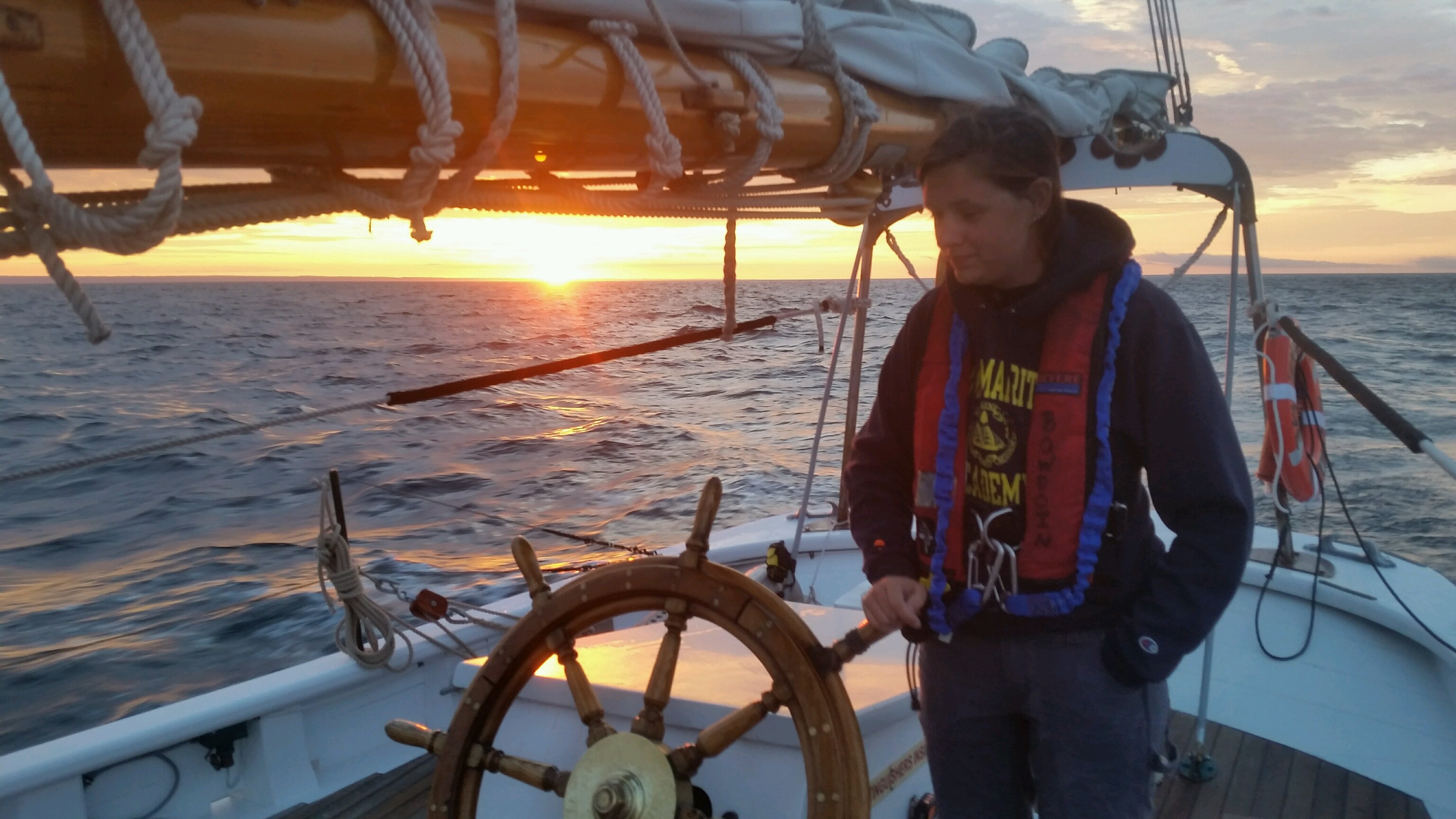 Today on board Bowdoin, as we sail on to our next port, we are visited by two small friends. Before the winds picked up, and the waves began to crash onto deck in a short burst of weather, two small birds landed on the deck to check out the rig. Moving block to block, up and down the lines we watched them for 10 minutes, until they decided to leave before we rode into some heavier weather.