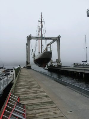 Bowdoin, Captain McLean, students, and crew will be spending some time over the next week in Belfast as the schooner undergoes routine maintenance at Front Street Shipyard.