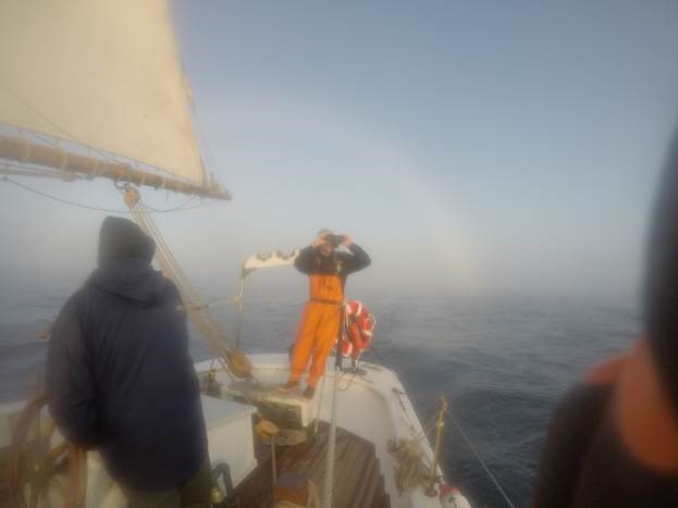 Rounding Cape Sable today came with lots of fog and a following current to push us around the corner up into the Bay of Fundy. The fog horn was ringing in the crew’s ears into the evening even after the fog was clear.