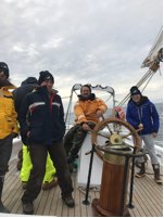 - Zach, Brittany, Andrew, and Addie on watch at the wheel