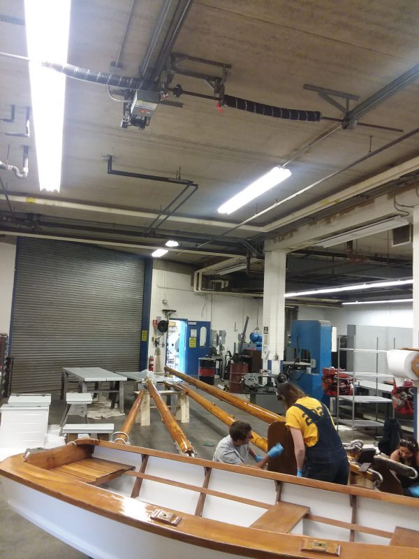 - Maria, Adeline, and Bob varnishing in the shop