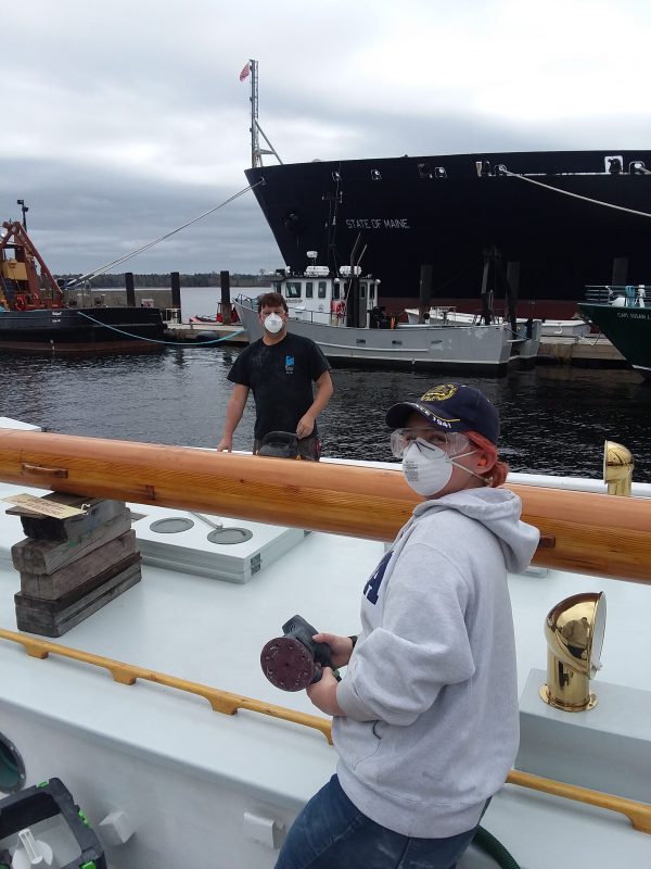 CR-214, the first of two summer training cruise courses, is officially underway aboard Bowdoin. This summer’s training cruise will take ten students to the South Coast of Newfoundland. The student crew is working hard to get the ship ready to sail by June 4. Over the next three weeks they will be sanding, painting, varnishing, and getting safety equipment ready. The outfitting will include a shipyard period at Front Street Shipyard in Belfast, Maine.