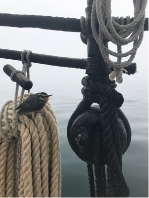 One bit of entertainment has been taking care of our stowaway bird the crew has named Pete!