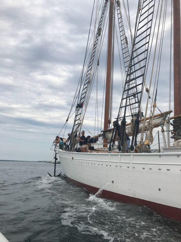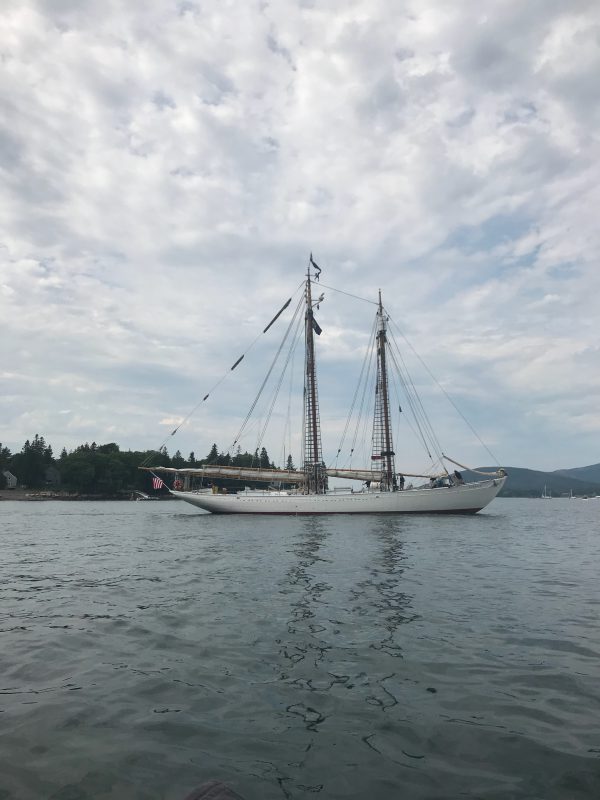 The crew ended the day anchoring off Bar Harbor with time ashore for dinner and ice cream.