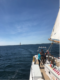 Today was a fine day to depart Lunenburg. The crew took advantage of a fair breeze to set sail in quick fashion once clear of the harbour mouth. Bowdoin was joined by Bluenose II as we made our way out to sea.