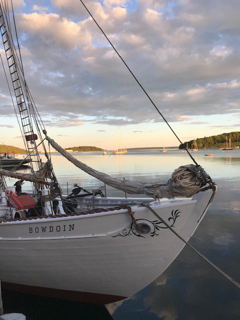 While the students and members of the crew were hard at work on the ship, the cook and second mate went grocery shopping. Our young sailors eat prodigiously and on this trip fresh veggies have fairly flown off the table! Once our fruit and salad stocks were revitalized, the rig tensioned, and the voyaging planning attended to, everyone was able to enjoy a quiet evening in town or on the ship before getting underway for Maine on Monday morning.