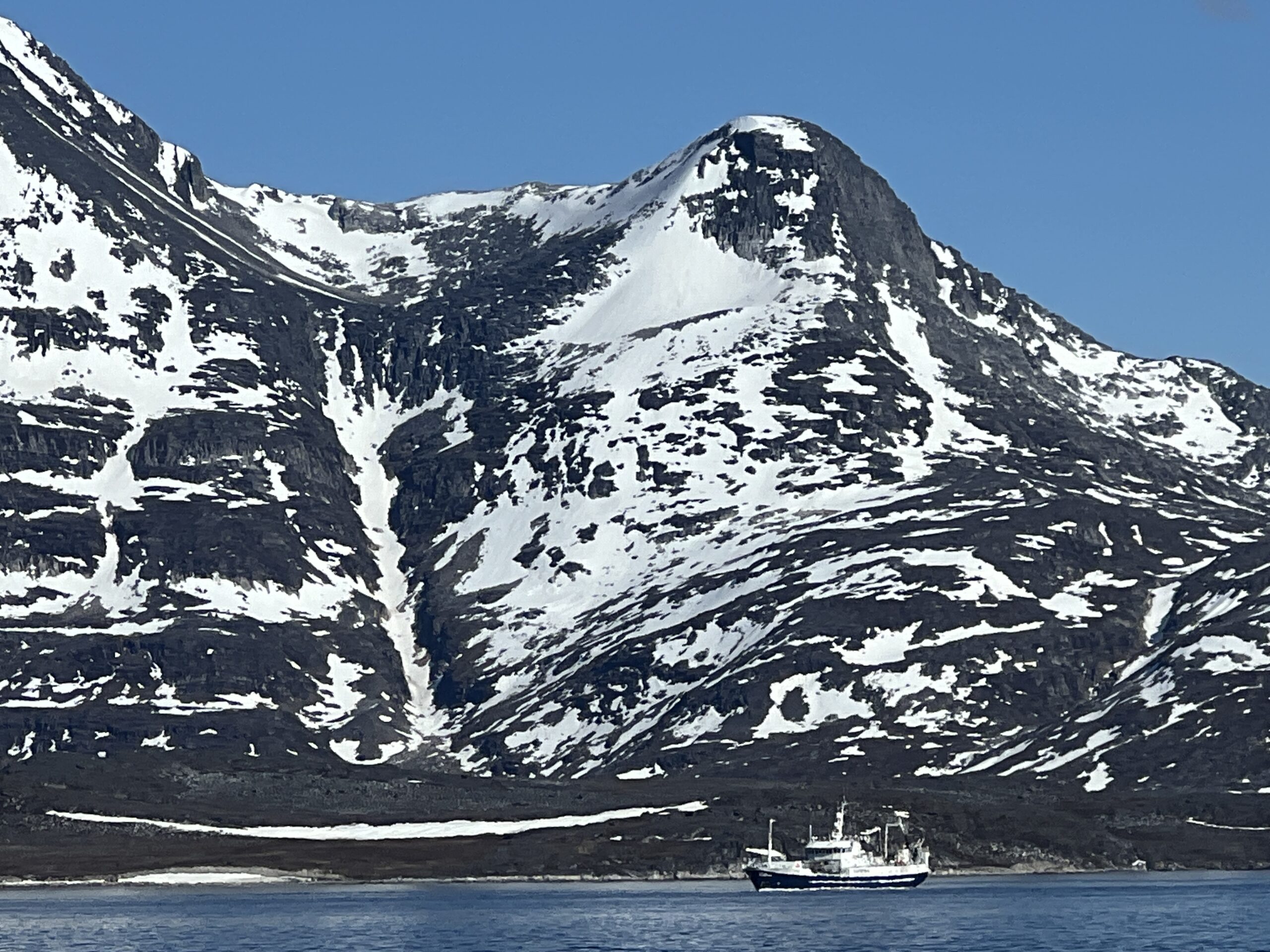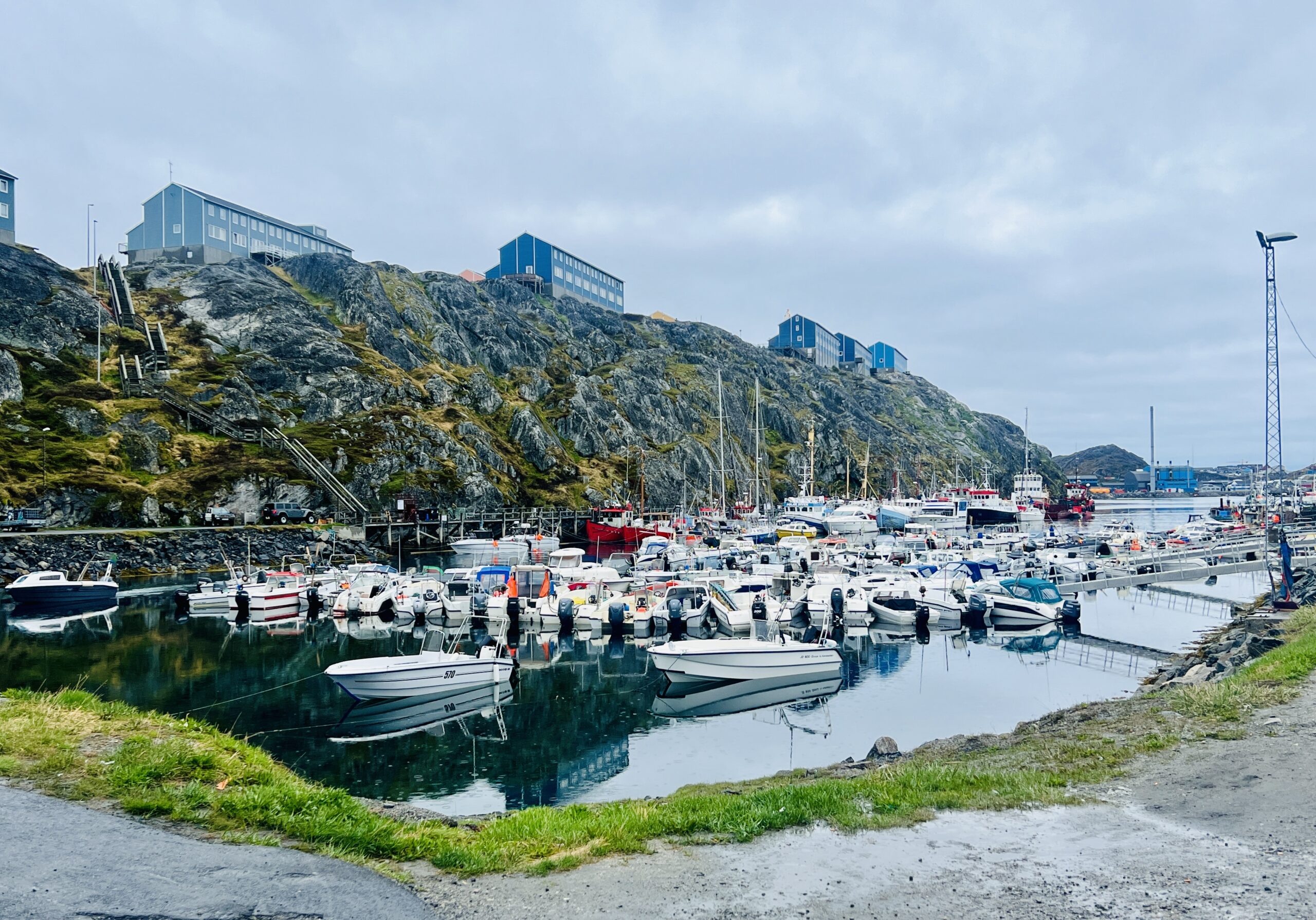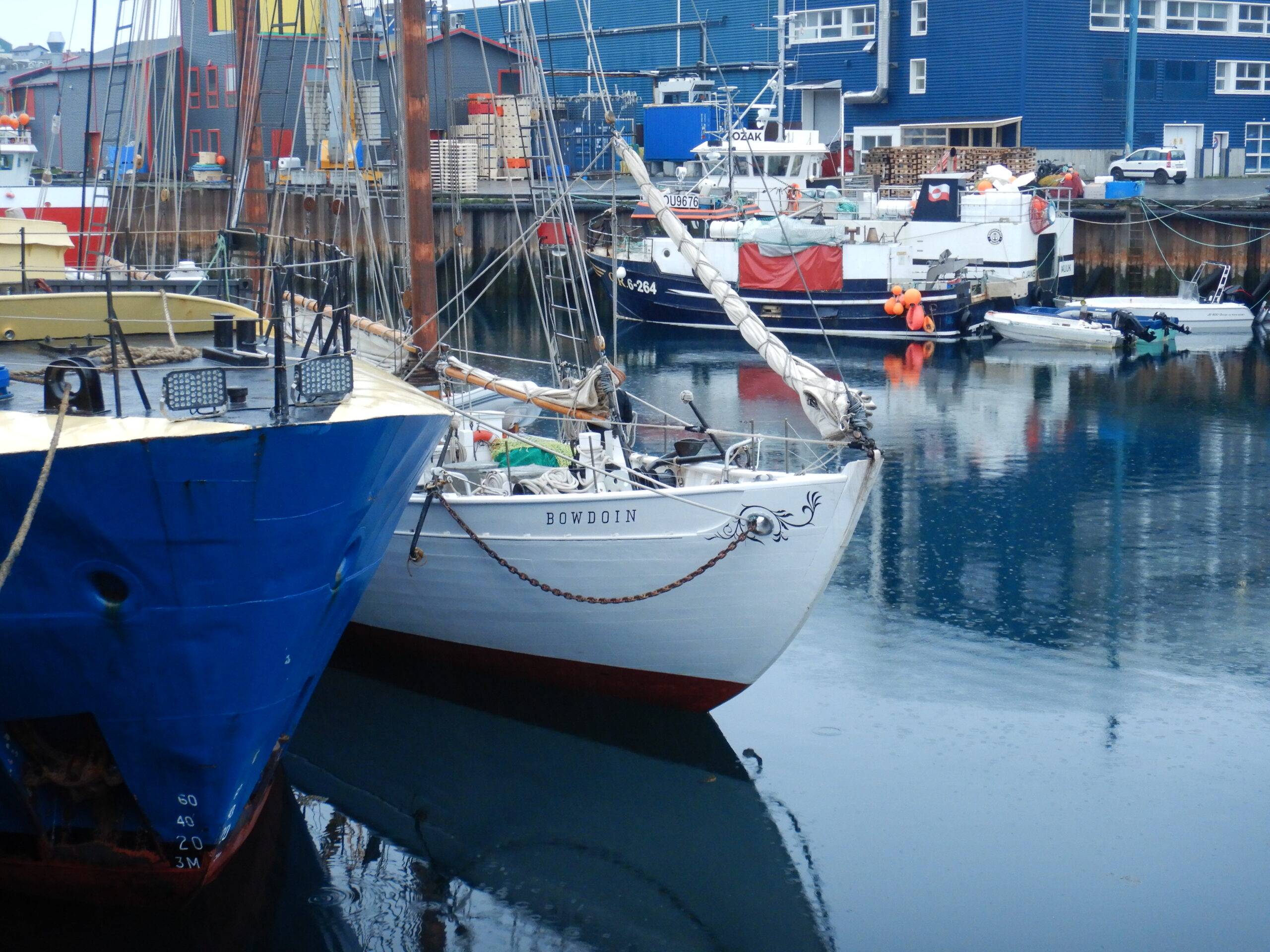 It’s currently 37°F in Nuuk, the capital of Greenland, and it’s a beautiful summer day! Nuuk is just a few miles farther north than its neighbor, the Icelandic capital, Reykjavik. Both cities share the distinction of being the northernmost latitude capital cities in the world. Sailing along the impressive Greenlandic coastline, the icebergs dotting the sea and the snow-capped mountains gave way to a view of the kaleidoscope of buildings in the distance as the Bowdoin turned into the Nuup Kangerlua fjord and sailed into Nuuk Port and Harbor. The fishing and seafood industries are important contributors to Nuuk’s economy, and most of Greenland’s fishing fleet is based in Nuuk.
