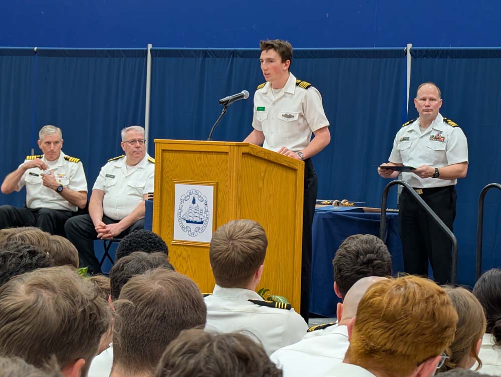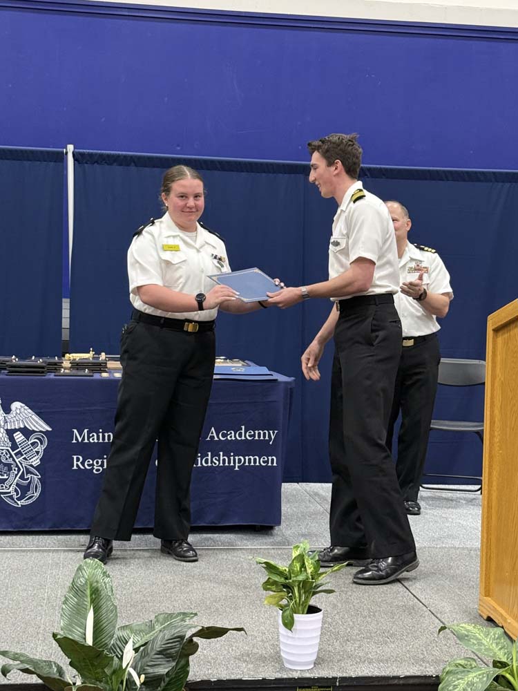 The Castine Veteran’s Association Veteran Leadership Award recognizes a Midshipman with a $500.00 scholarship who is also a military veteran who has gone above and beyond for their fellow shipmates, displays professionalism, and sets a strong leadership example for others emulate.