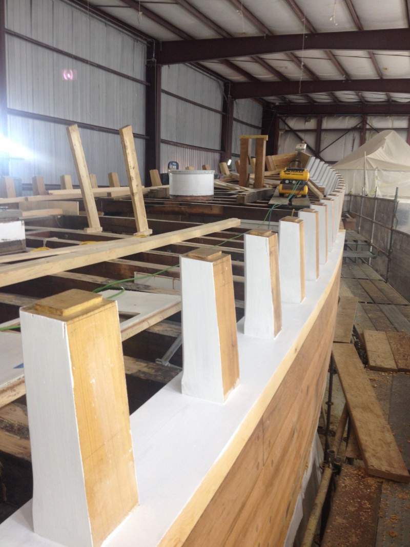 So much has happened in the last month! The stanchions are all faired, chamfered, and are ready to receive the caprail. Additionally, the exhaust is well on its way to being installed, as are the fuel tanks. Perhaps the most exciting update is that we’ve started laying the deck. All just in time for the spring weather!