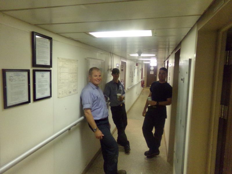 - 2/C Gamache, 4/C Whittemore and 4/C Gooch outside the mess decks.