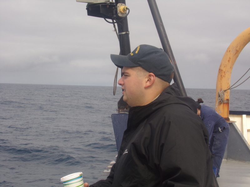 - 4/C Thibodeau standing lookout on the stern during watch.