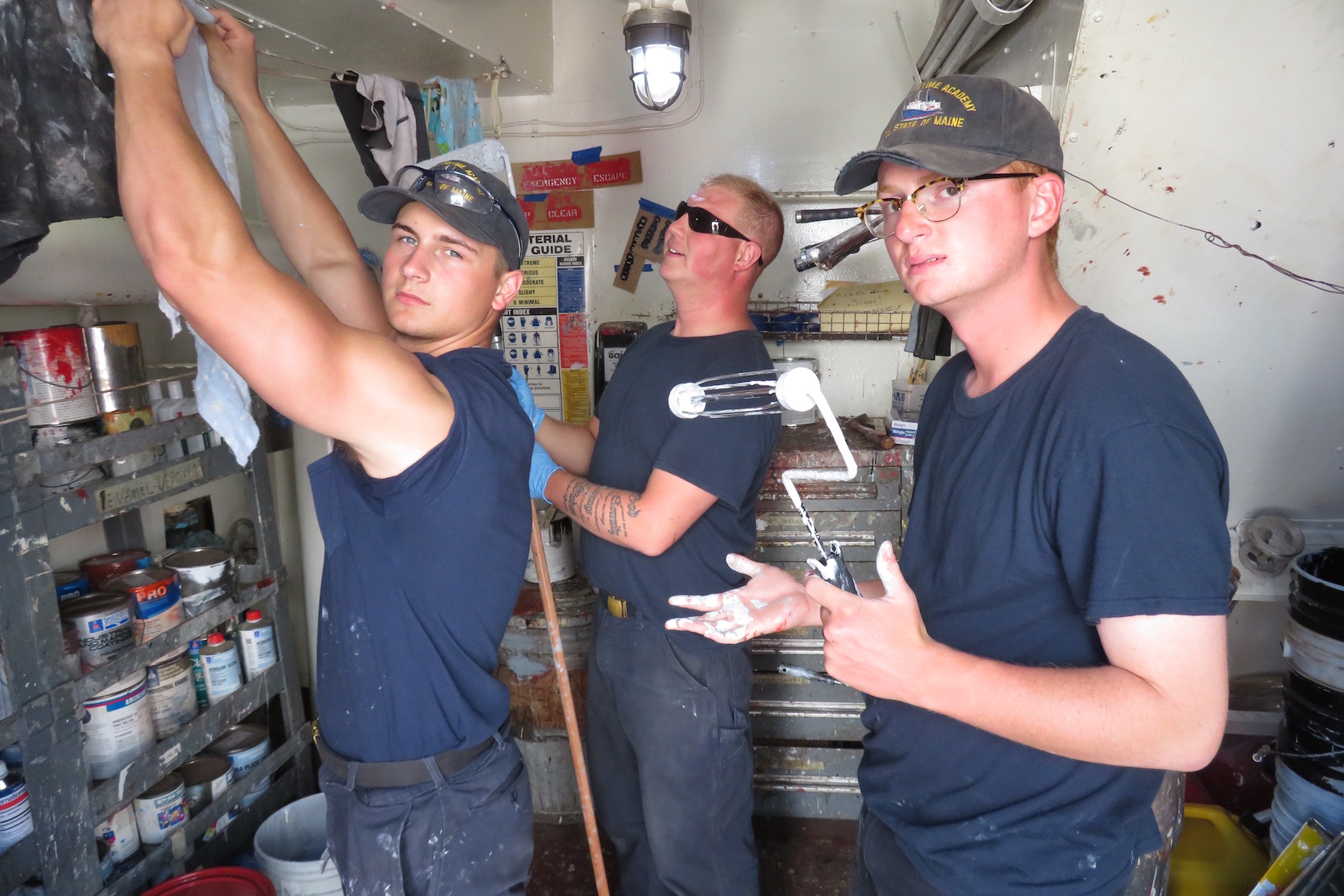- 4/C Gillespie, 4/C Kelly, and 4/C Merrill painting during their day of maintenance
