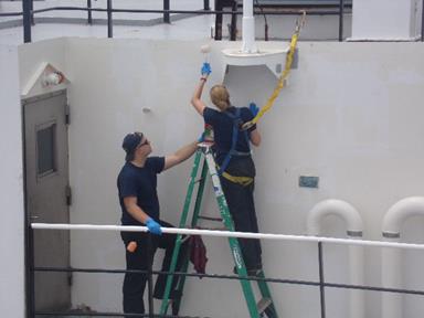 - 4/C Mehuren and 4/C Reynolds are seen here painting the outside of the 03 deck forward house.