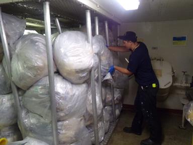 - 4/c Davidson is stuffing the garbage hold with another trash bag.