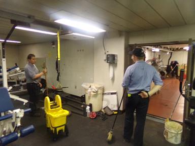 - 4/C on utility cleaning the gym and engine training lab.