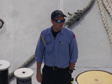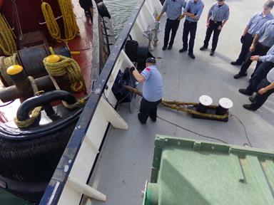 - Cadet Chief Mate 2/C Salerno keeping a watchful eye on line handling to ensure everyone is safe and staying within safety guidelines.