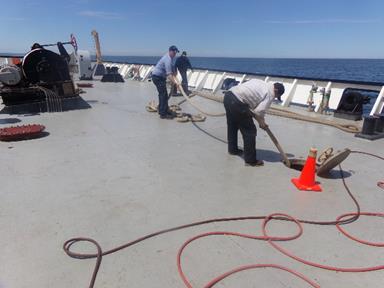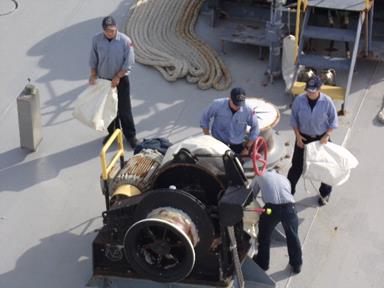 - It is important to keep the mooring lines out of the weather and sun as much as possible because the sun and moisture can cause them to deteriorate. We cover the lines on the winches and store all other lines inside the ship.