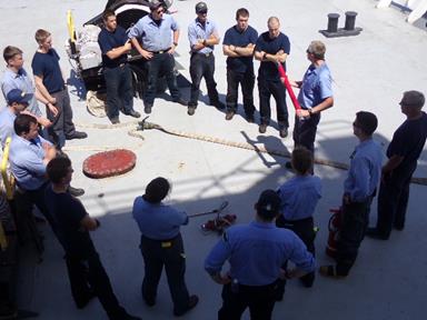 - Chief Mate McAvoy is explaining what each piece of equipment is, and how each operates before commencing the training evolution.