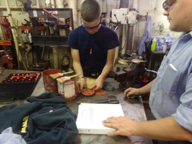 - 4/c Snow and 2/c Tardif are making gaskets for the Level Indicator for the Potable Water Tank.