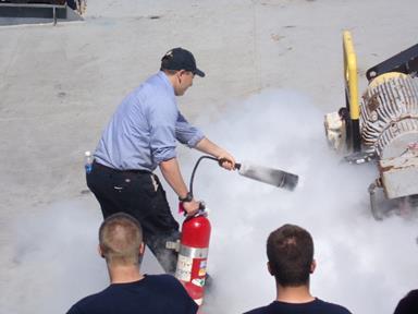 - Cadet 3rd Mate 2/C Cameron performs fighting a fire with dry chemical agent.