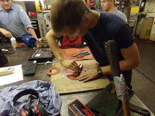 - 4/C Reed is seen here making a new gasket for the Nirex, using the skills taught on engine training.