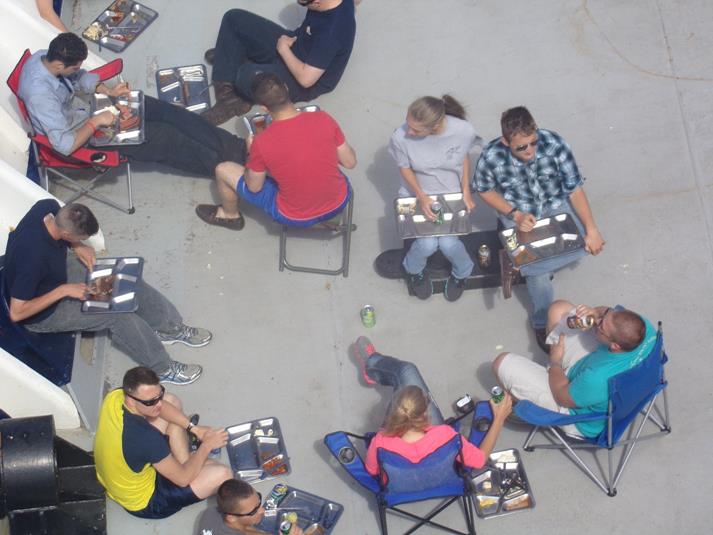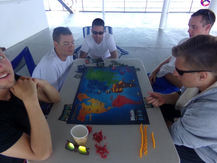 - A couple of 2/C are enjoying the holiday by sharing a game of risk with some of the Training Officers and Crew. It is always nice to be able to go play a board game outside instead of inside a stateroom or lounge.