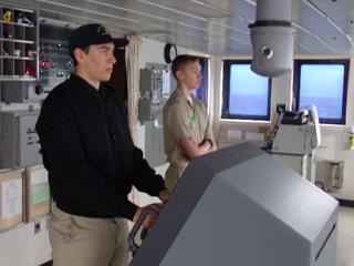 - 4/C Davidson and 4/C Zinni on the bridge keeping a weather eye out for potential collisions and keep the training ship on course to Cadiz.