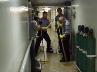- Armed and dangerous keeping the passage ways clean and sanitary. Suppressing the spread of germs is very important on a ship filled with nearly three-hundred people.