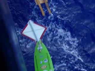 Today students and crew had the opportunity to assist two elementary schools with an interactive learning program called Educational Passages. Prior to our departure from Castine, students from Houlton Shire School in Houlton, Maine prepared a small sailing vessel which they named SS Maine Shire. When we arrived in Charleston, a class from St. Andrews School of Math and Science brought a second vessel to us which they named Carolina Dreamer. Both boats are equipped with GPS satellite tracking systems that allow the students to follow travels of the boats in order to understand the effects of currents and winds. The boats were launched at 0800 EST at the following location about 100 miles WSW of Bermuda) 31 42 N 066 46 W.