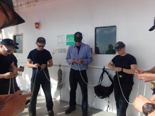 We are completing our transit of the Bahamas and will turn to the North shortly. Good weather has allowed us to continue a lot of work on deck including the Charlie 4/C getting their introduction to basic knots while in the shade of lifeboat #1. There was a lot of focus on preparing the starboard companion way and quarterdeck for our visit to Charleston with liberal use of the fresh water for cleaning and cooling off in the humidity and heat. The flying fish have been entertaining but our intrepid fishermen have not caught anything as of yet.