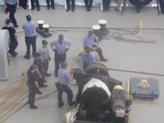 The morning presented us with rain showers but clearer skies are showing ahead as we move out of the shadow of Ana so the Bosun is happy that painting can resume out on deck. Delta has assumed the watch while Charlie picks up with Training Day 2. Alpha is working on Utility projects and Bravo is continuing on with Maintenance.
