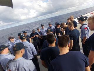 Due to the Training Ship’s limited connectivity to the Internet, blog postings are delayed and are not intended for real-time communication. To communicate with your student, please send messages to his or her issued e-mail address.