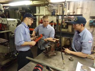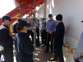 Today Charlie was on maintenance and the engineers were working on the oil fired boiler while deck was making the most of the clear weather to get some scraping and painting done. Delta was on training and engineers had lectures early on followed by working on their thermodynamics projects while on the deck side the 2/C taught some basic marlin spike to the 4/C and got to work on their navigation project in the evening.
