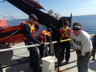 - Performing preventive maintenance on one of the two rescue boats & davits.