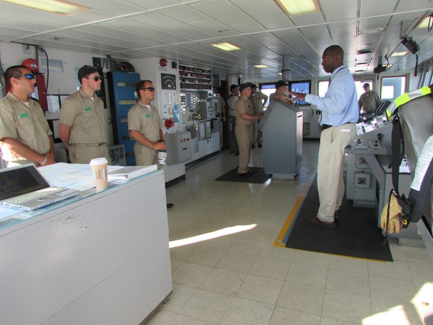 We had a good visit in Norfolk with a lot of work done by everyone. We loaded several trucks worth of supplies that were provided by the US Navy and MARAD, including some new gym equipment and extra lifeboat engines. Loading the propeller blades on was probably the most interesting evolution of the visit. Some students had the opportunity to tour some Navy and MSC ships and many took advantage of the buses to the beach. Today was spent making our way out of Chesapeake Bay and heading off-shore before the turn North to NY for fuel.