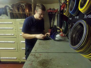 - 4/C Bernier sizes a gasket for a valve on engine maintenance today.