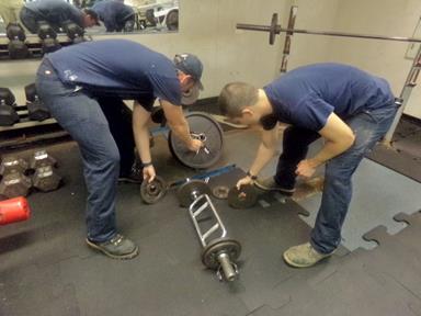 - 4/C Flaherty and 4/C Erickson clean up the weight room in preparation for getting the new gym equipment that is coming on in Norfolk Virginia.