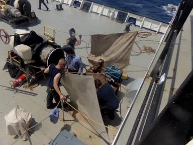 We spent the morning with Deck Training calculating search patterns for search and rescue since we are a bit ahead of schedule for our arrival in Norfolk. Preparations continue for the loading of equipment when we get to port and almost everyone has started a countdown to Castine.