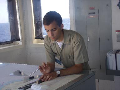 - 2/C O’Conner plots a radius of particular interest where the navy is carrying out training operations with low flying helicopters. We received this warning from a device on the bridge called the Navtex which prints a list of similar information about military operations, as well as weather concerns, distress calls, and any other pertinent navigational information.