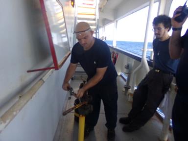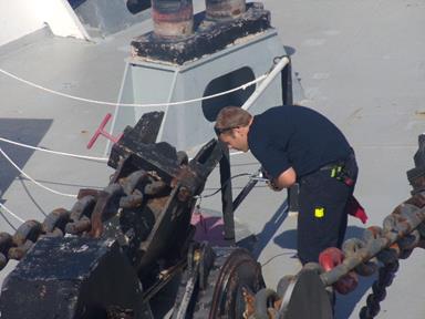- The Cadet Chief Mate, 2/C Salerno, greases the hinge of the preventer bar on the anchor windlass. As assistant to the ship’s Chief Mate, some of his responsibilities include the general maintenance and upkeep of all major deck equipment including the anchor windlass, mooring equipment, and navigational devices, as well as all safety equipment on board.