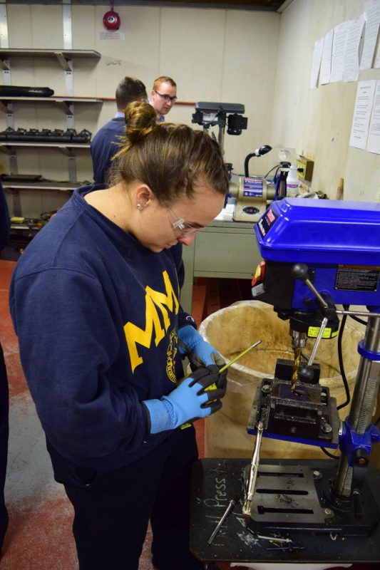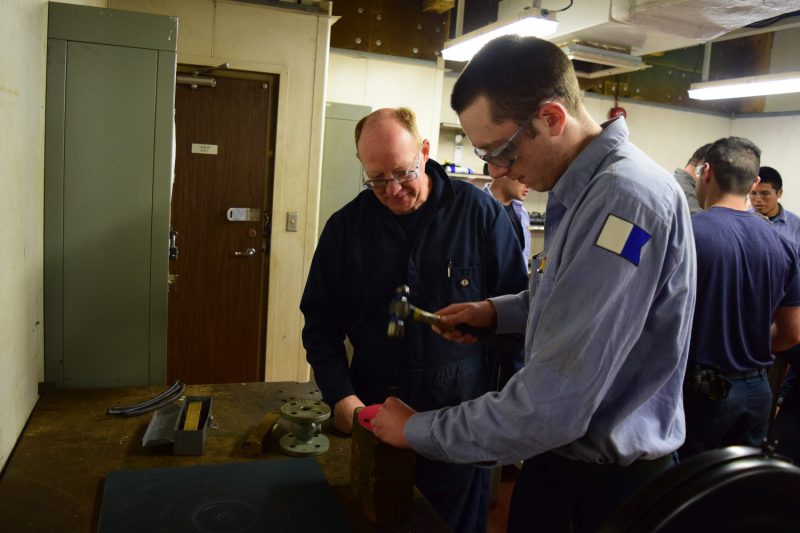 - Professor Walker supervises 4/C Gorecki as he cuts a gasket in training